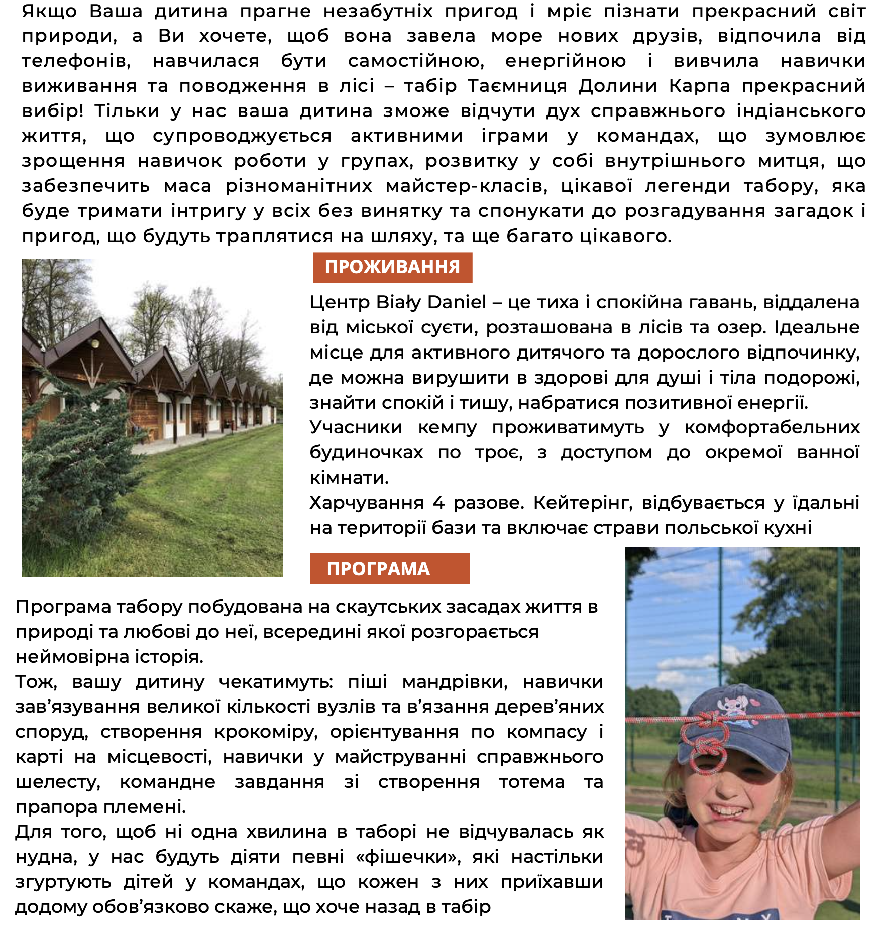 табір в скаутському стилі для дітей від 6 до 11 років